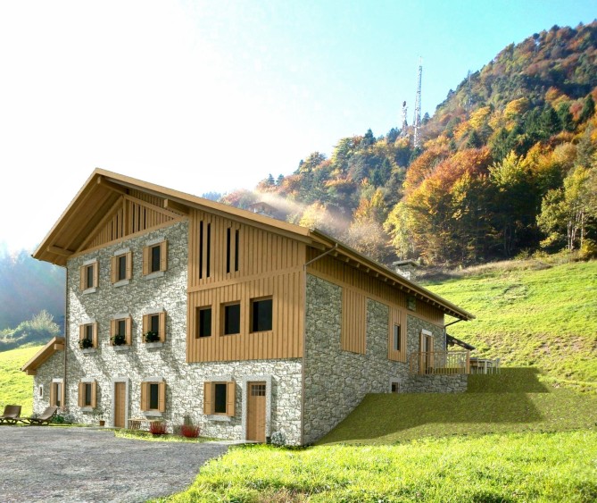 An approved project of an apartment house or family villa in the beautiful Dolomites between Madonna di Campiglio and Lago di Garda